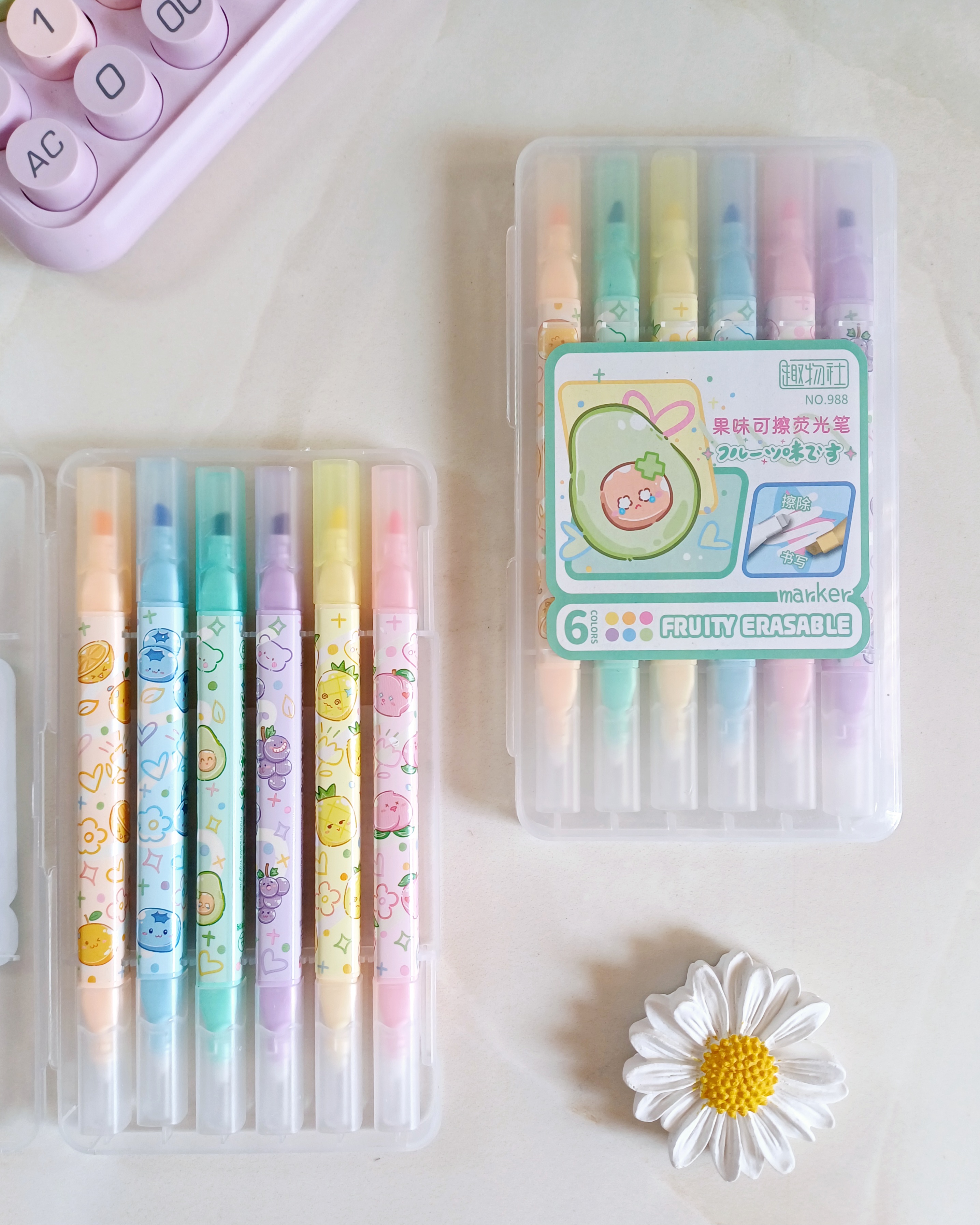 هایلایتر ۶ عددی طرح مداد هایلایت 6 رنگ فانتزی کیوت