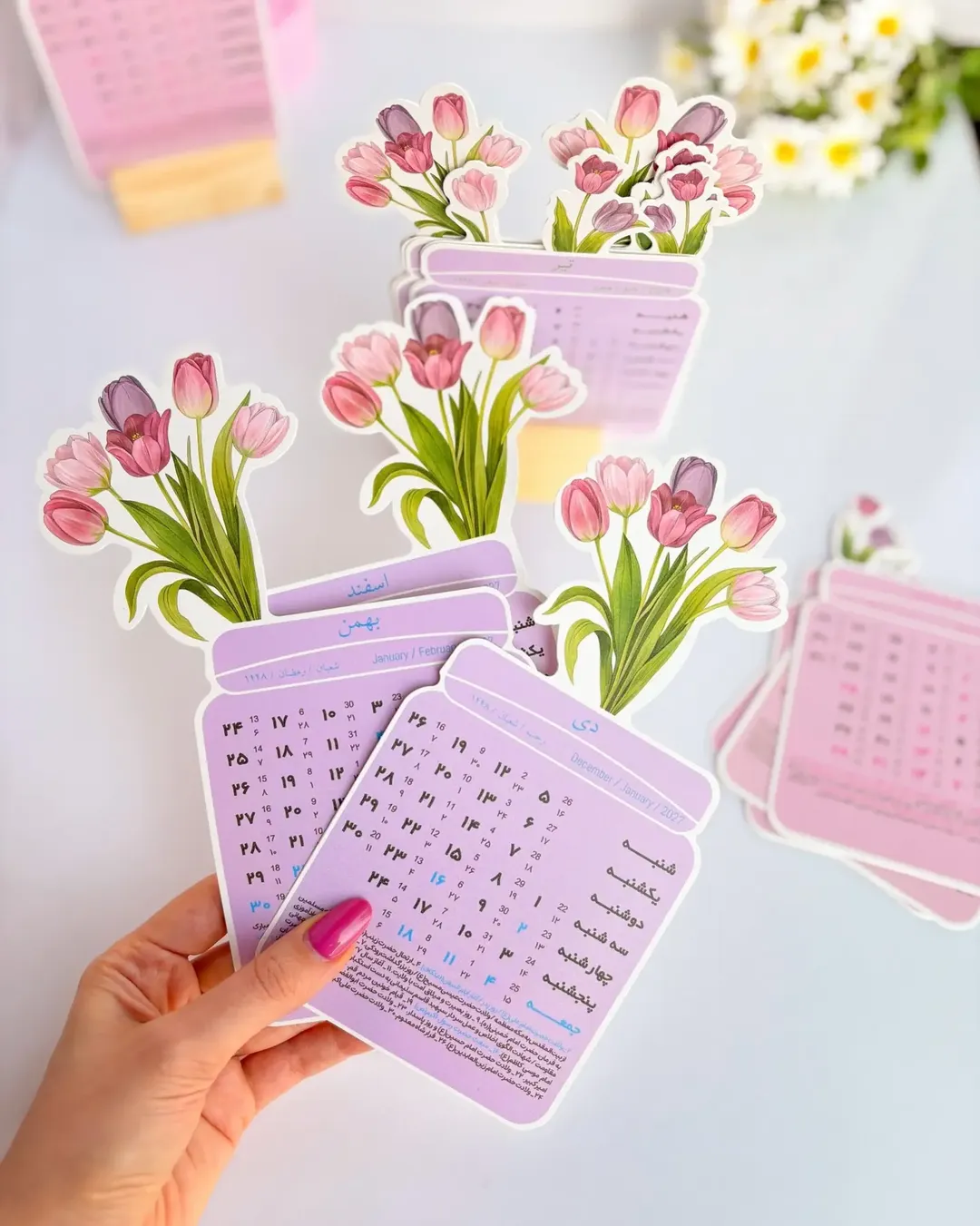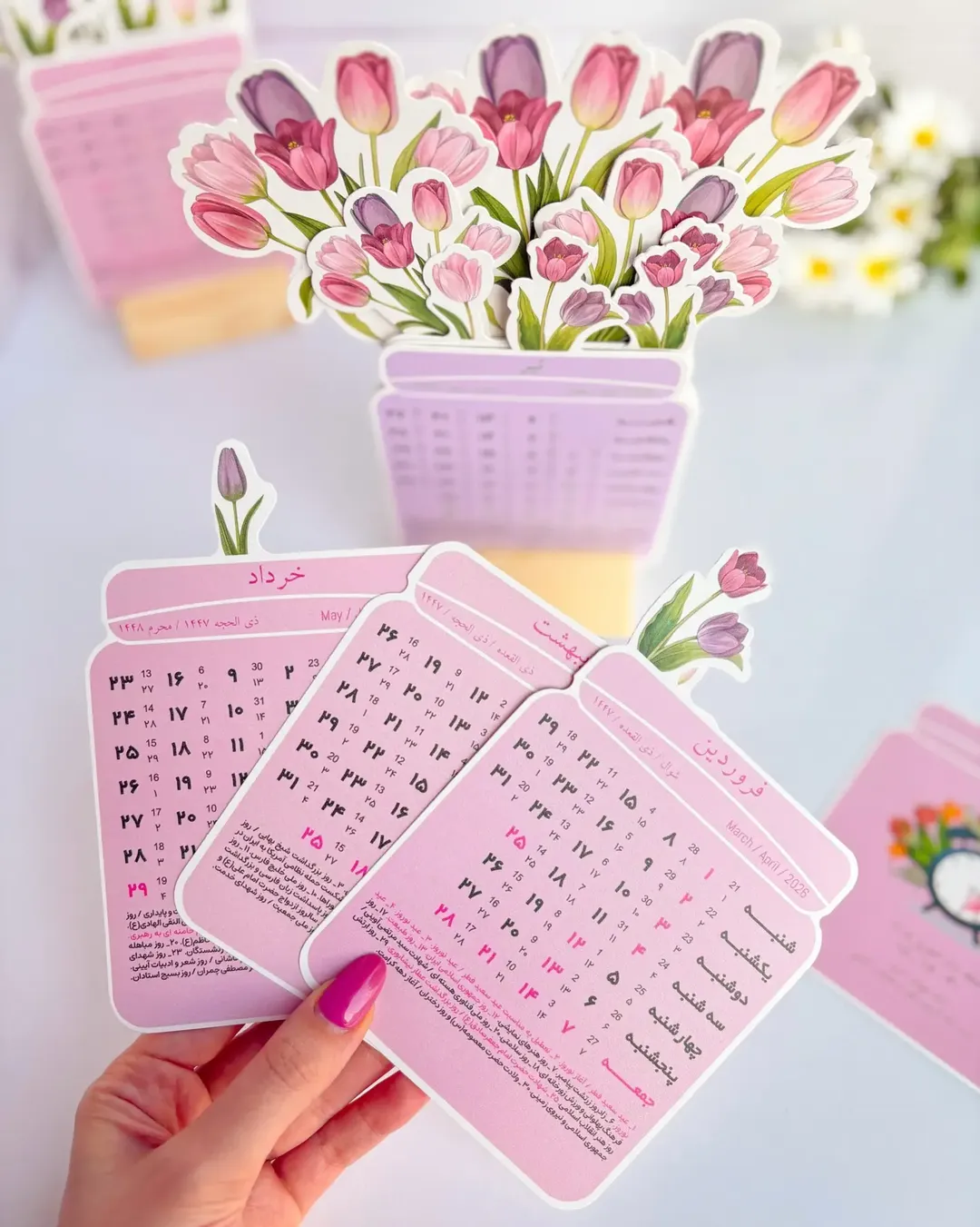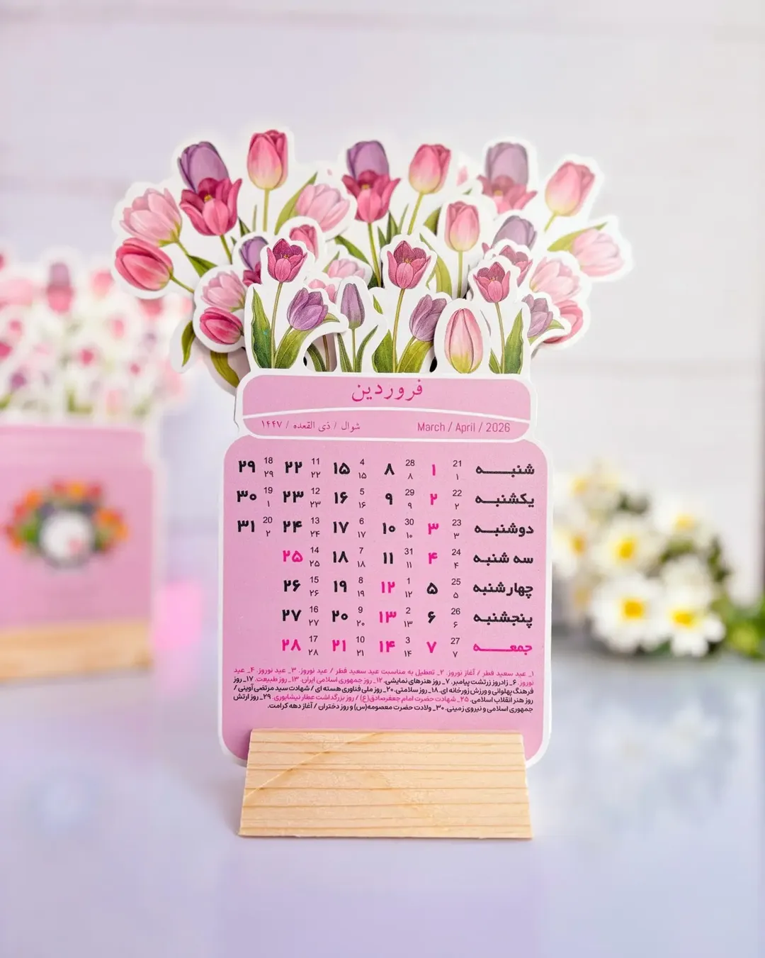 تقویم رومیزی دسته گل چوب راش ۱۴۰۵ تقویم گل ، تقویم فانتزی