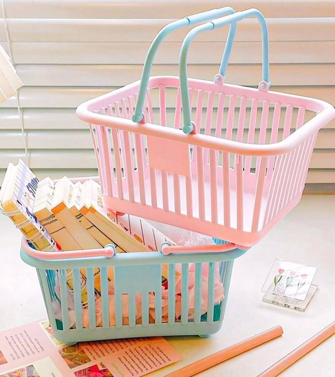 سبد فانتزی پینترستی دسته دار طرح مستطیل محکم و بادوام