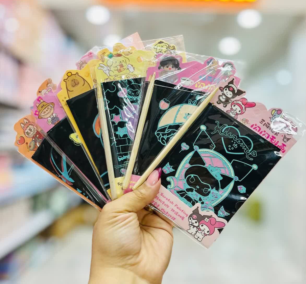 نقاشی ذغالی خراشیدنی اسکراچ ۴ ورقی کرومی لبوبو کاپی بارا و دختر انیمه فانتزیناموجود