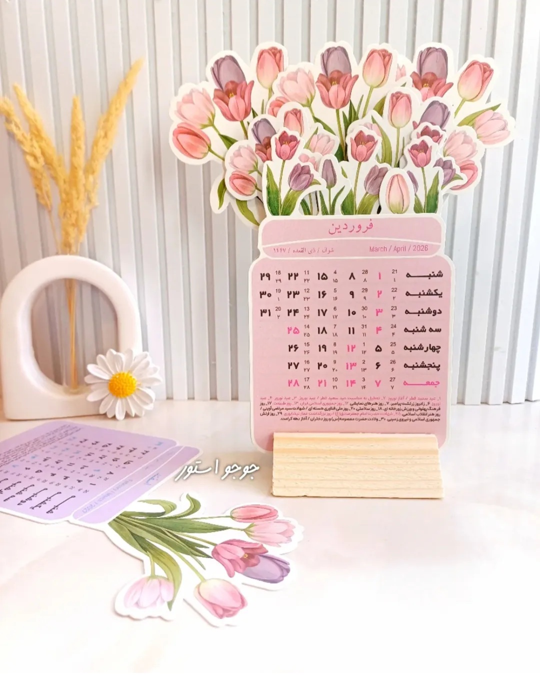 تقویم رومیزی دسته گل چوب راش ۱۴۰۵ تقویم گل ، تقویم فانتزی از برند سویل