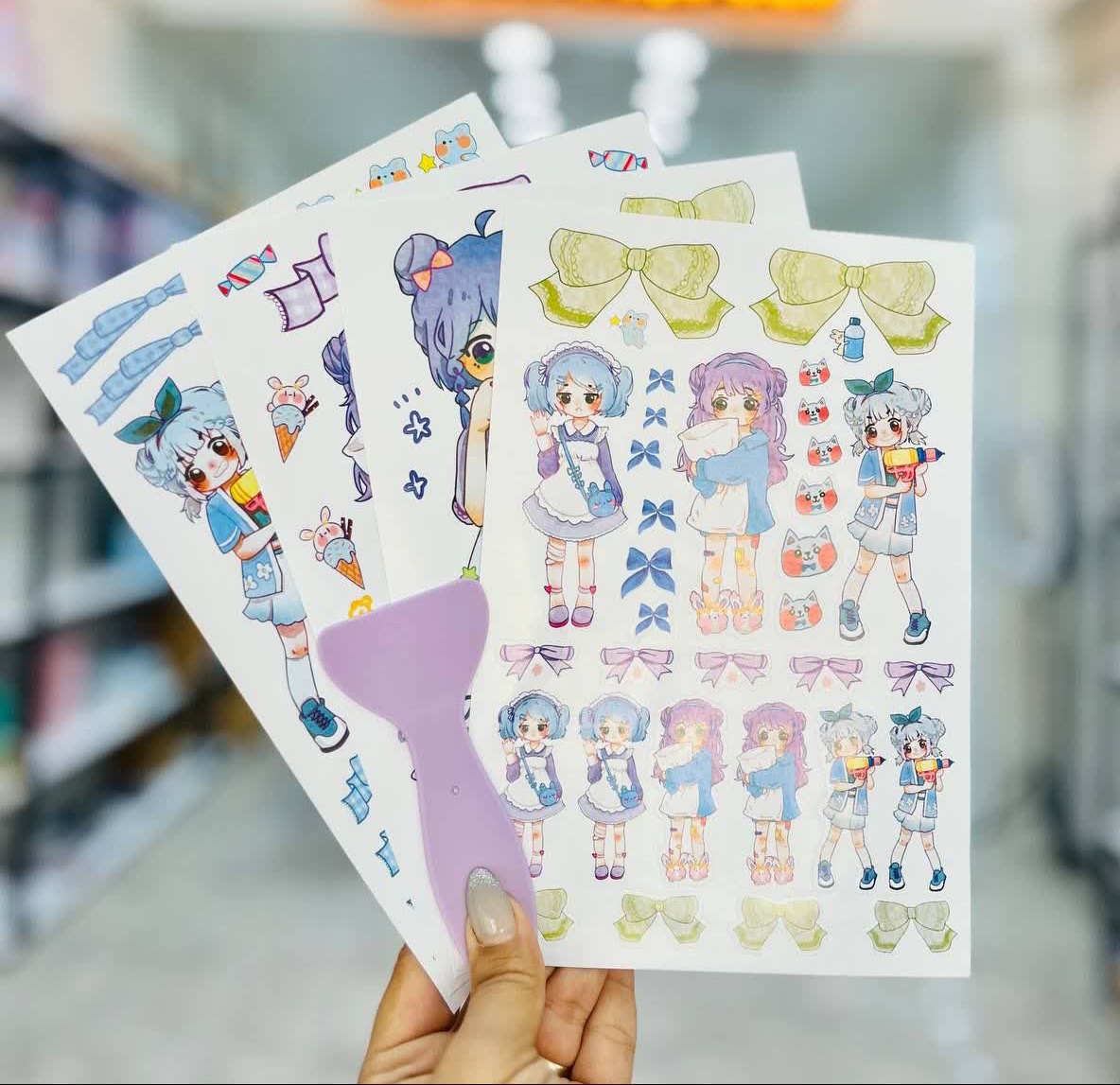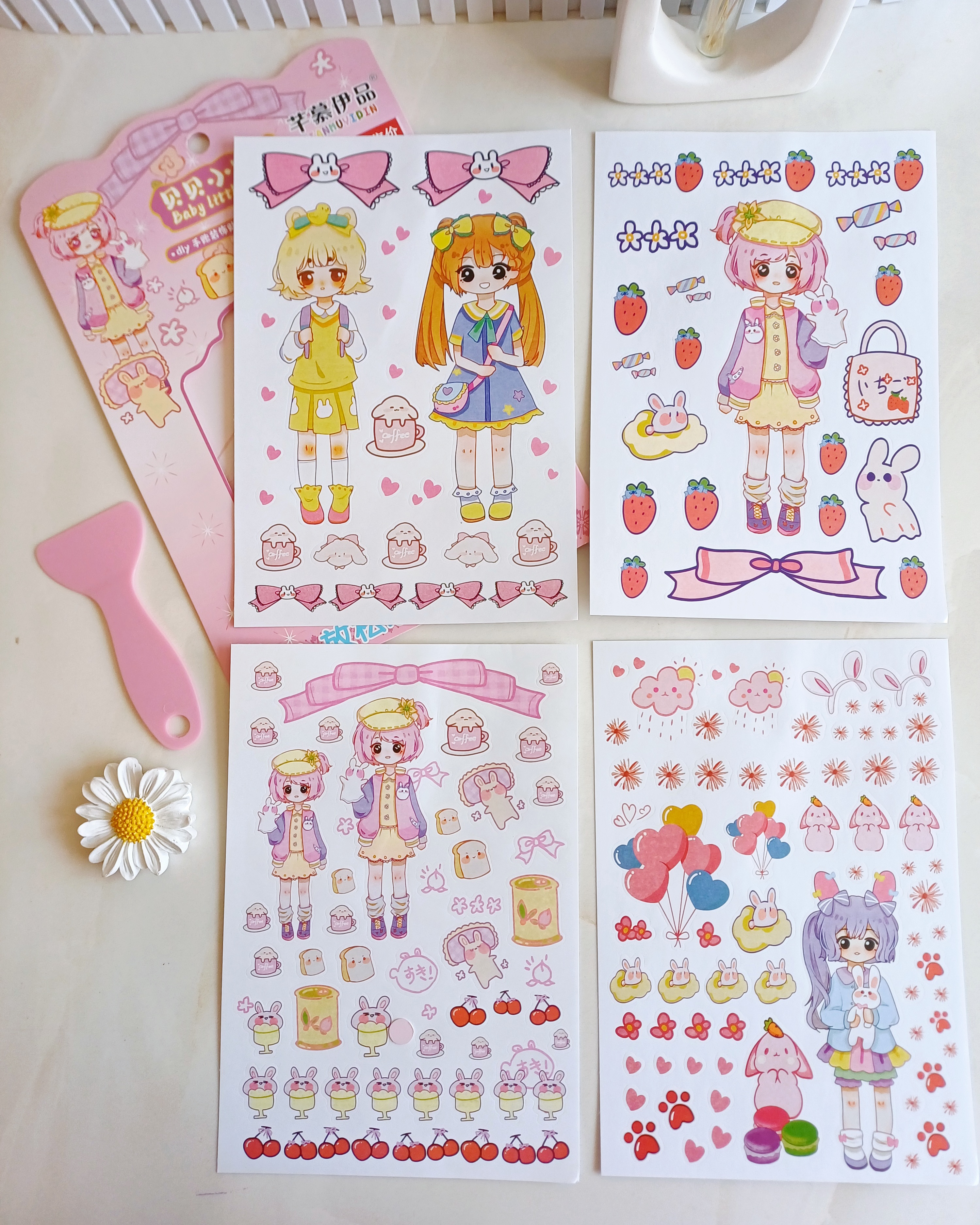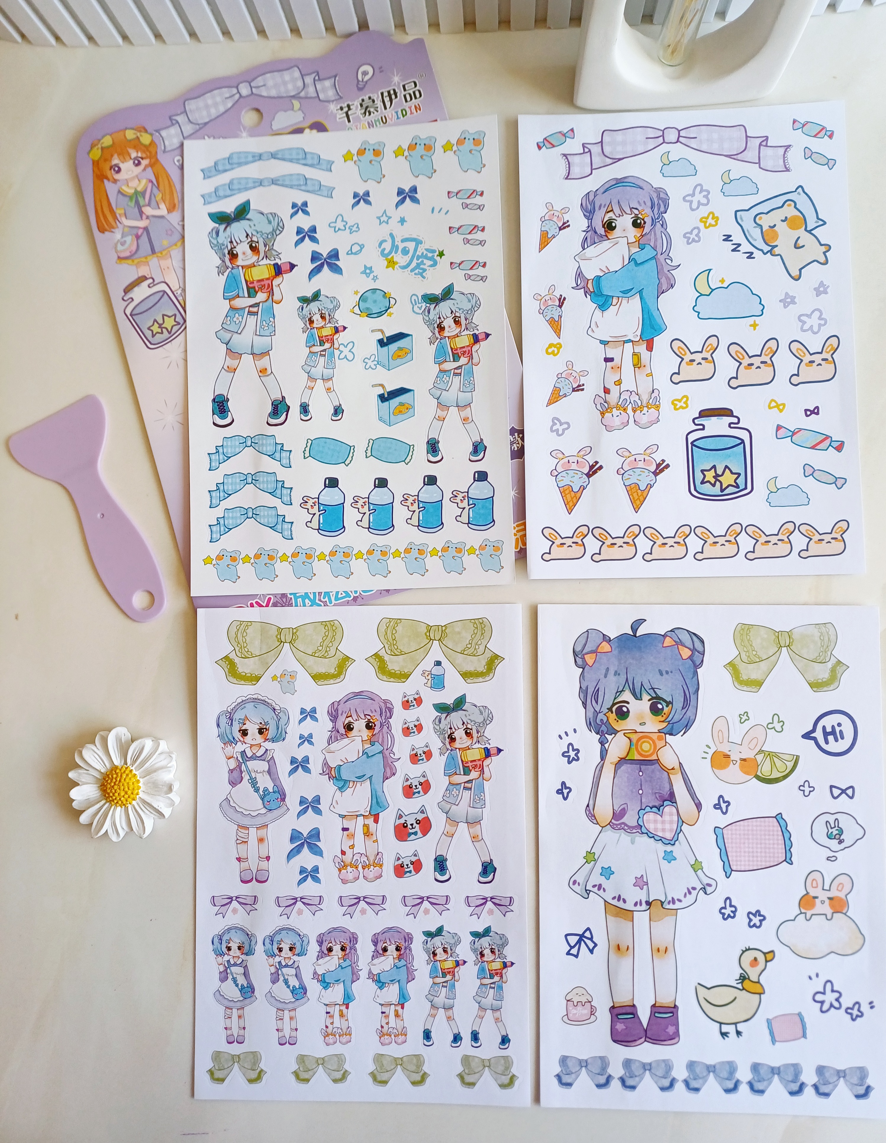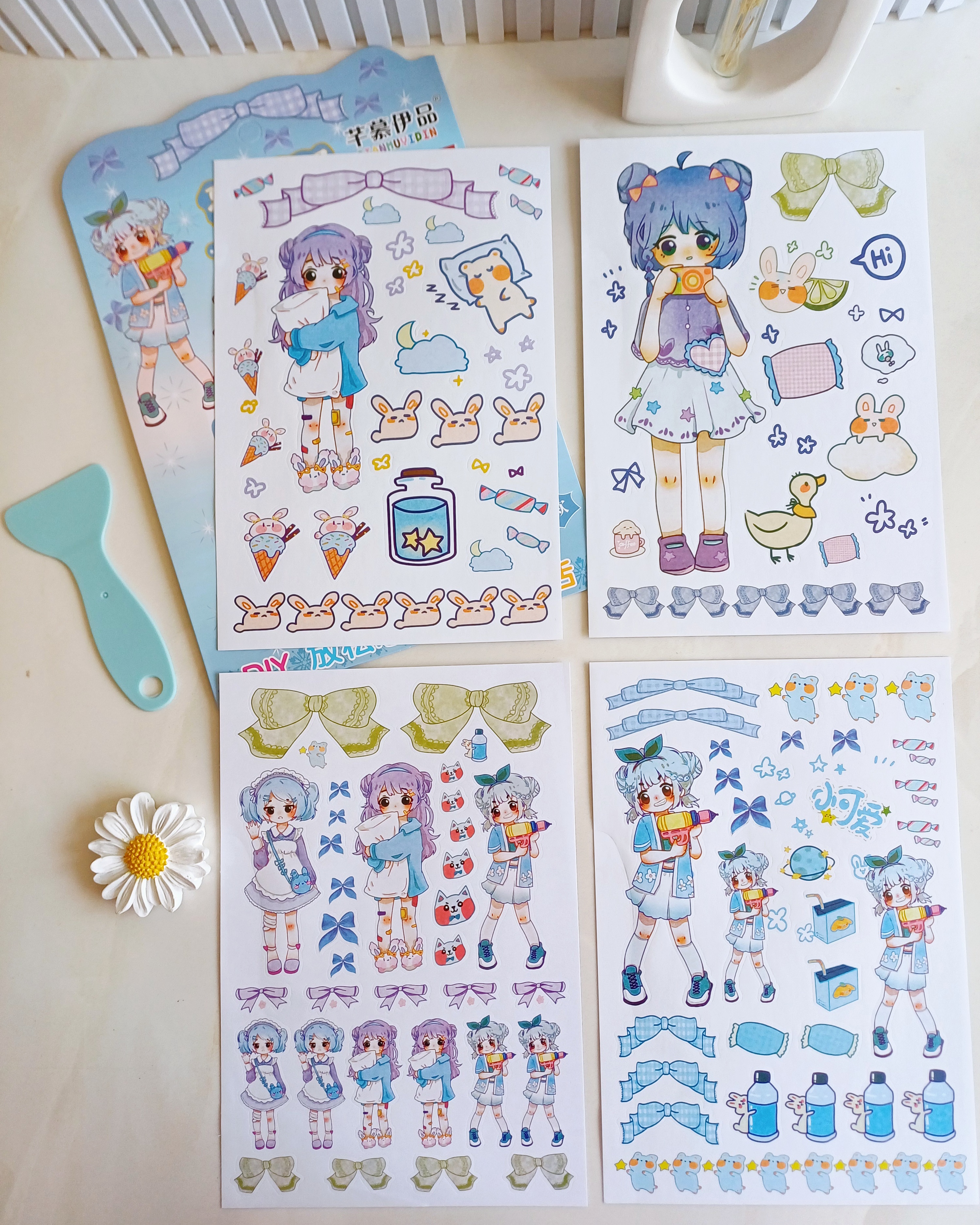 استیکر و برچسب دیزاین و تزیین دختر انیمه ۴ ورقی فانتزی همراه با کاردک مخصوص