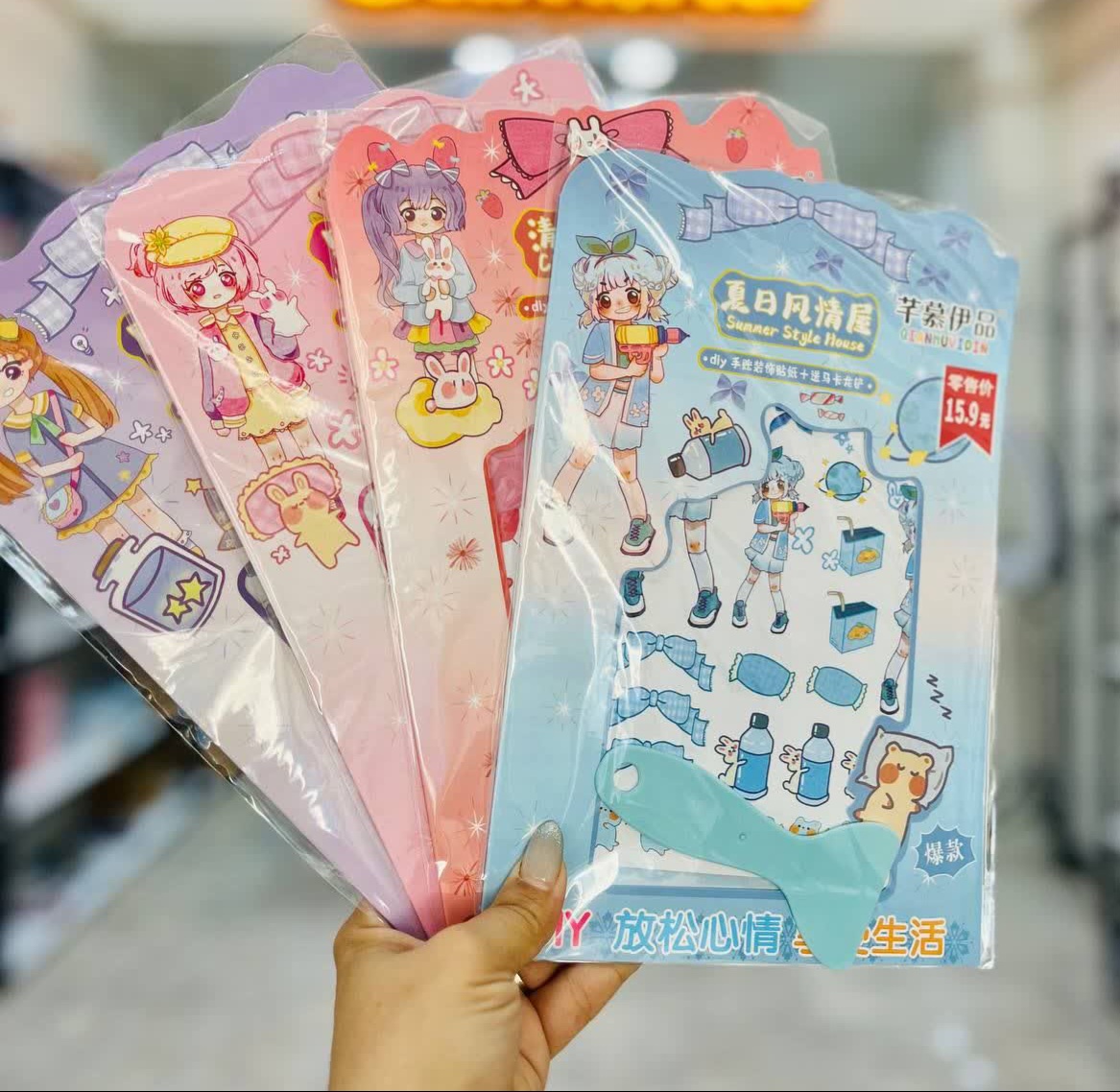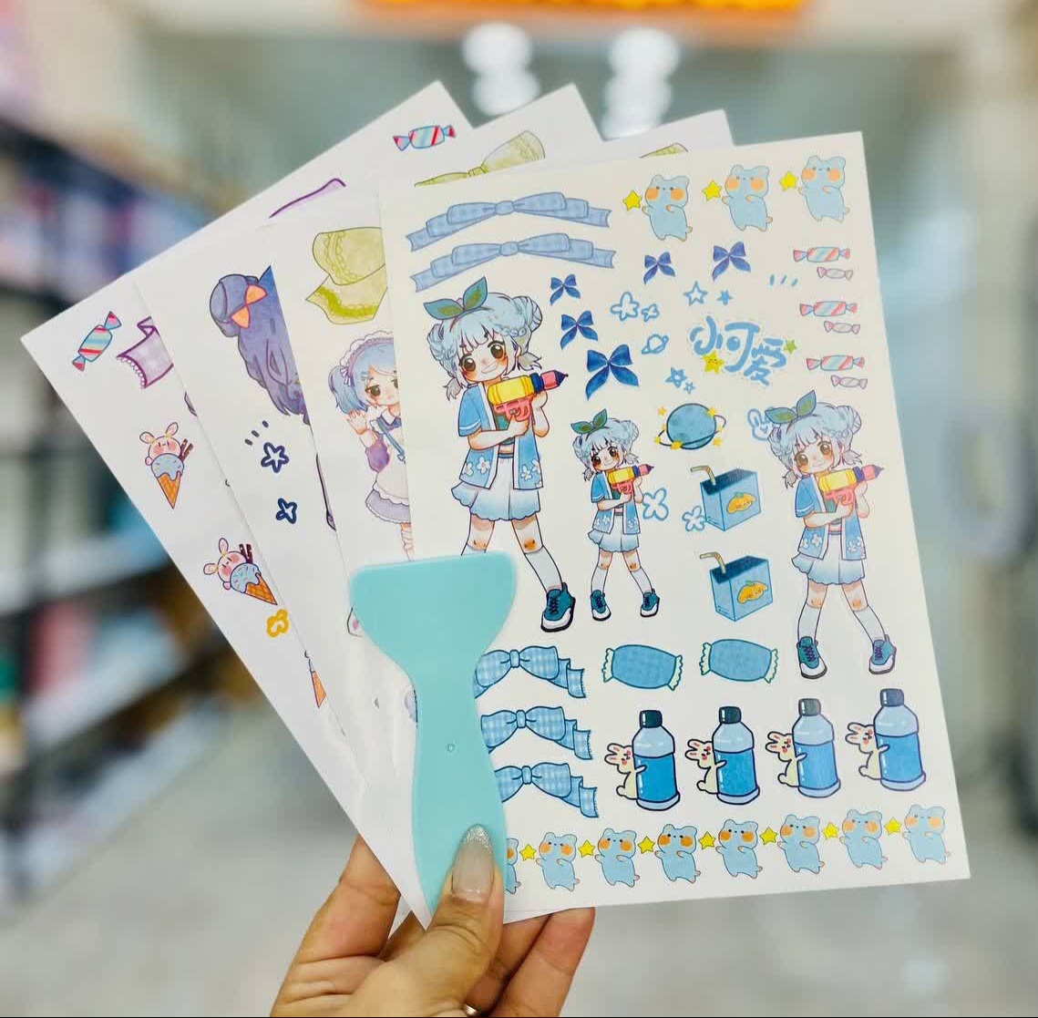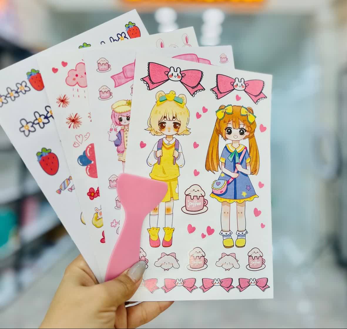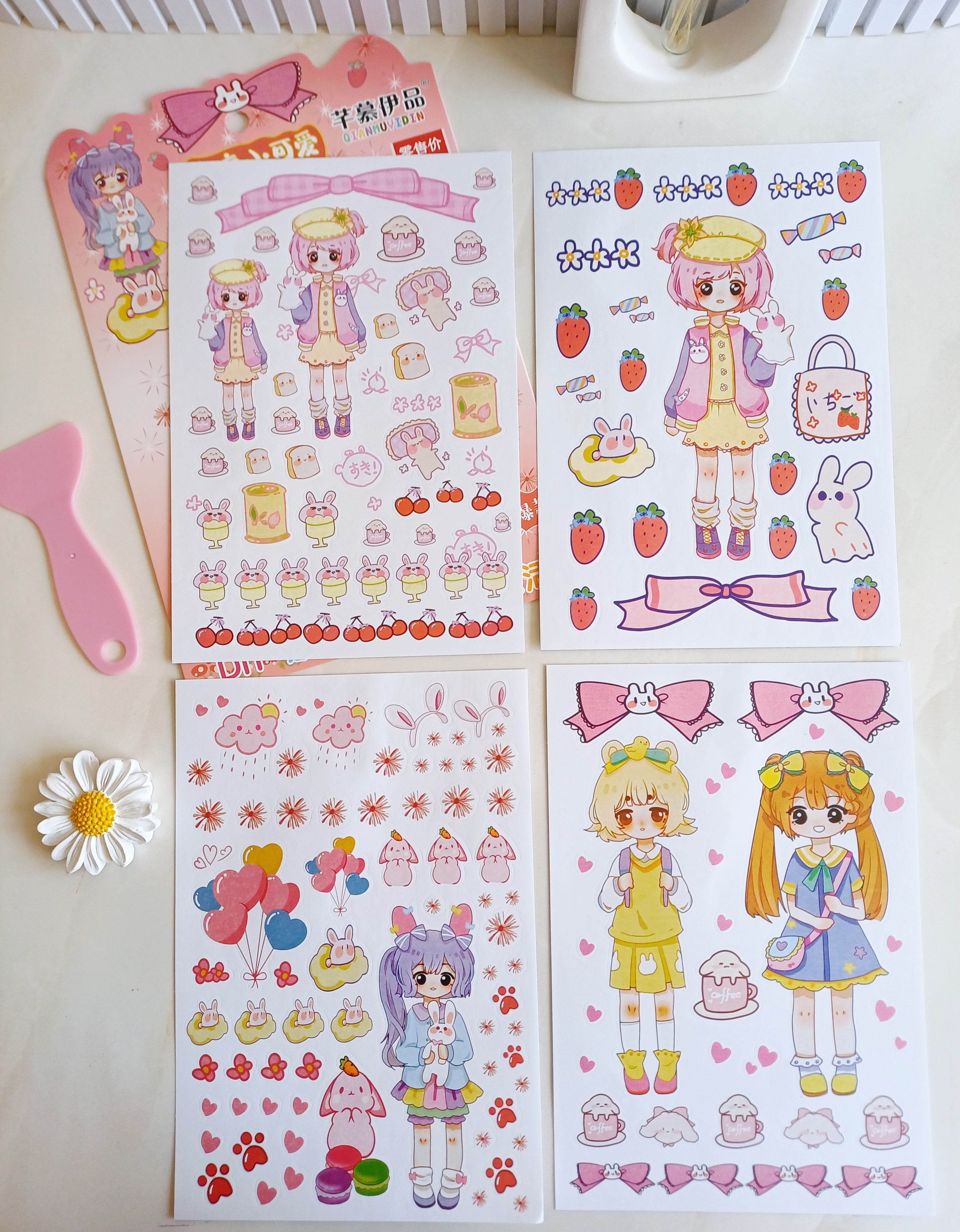 استیکر و برچسب دیزاین و تزیین دختر انیمه ۴ ورقی فانتزی همراه با کاردک مخصوص