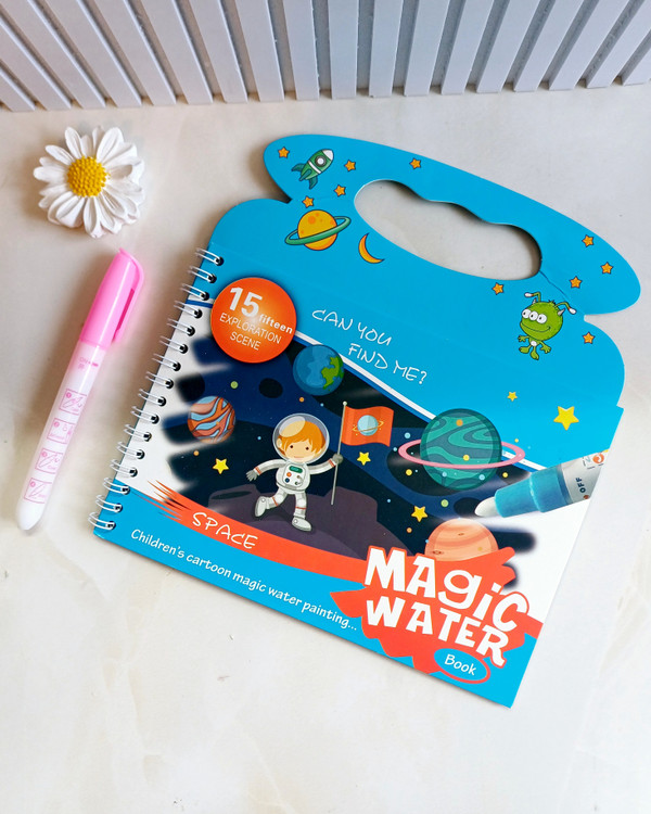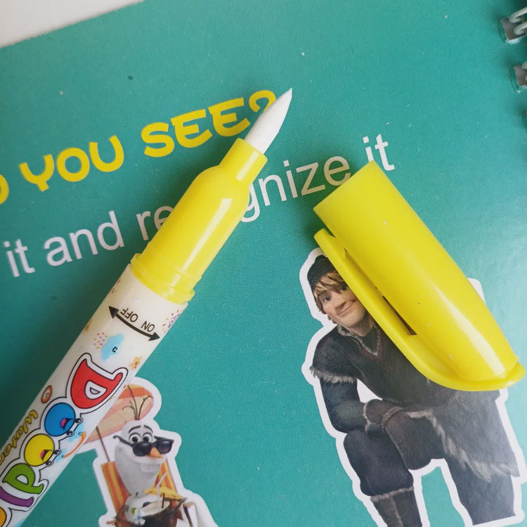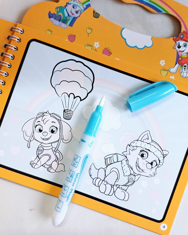 یک قلموی مخصوص داره که با آب پر میشه و وقتی روی صفحات کشیده میشه ، رنگ آمیزی میشه ولی به هیچ جایی رنگ نمیده.