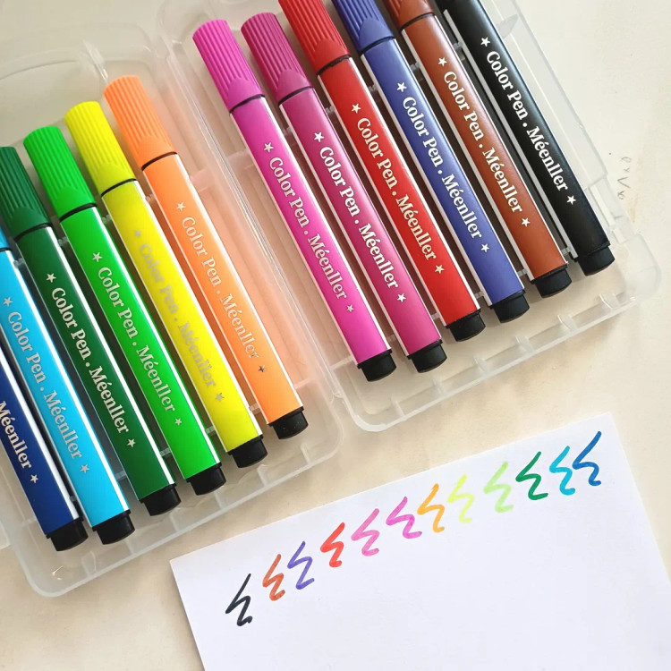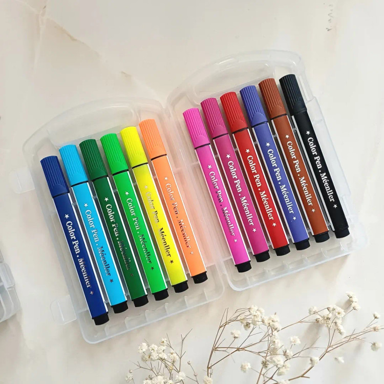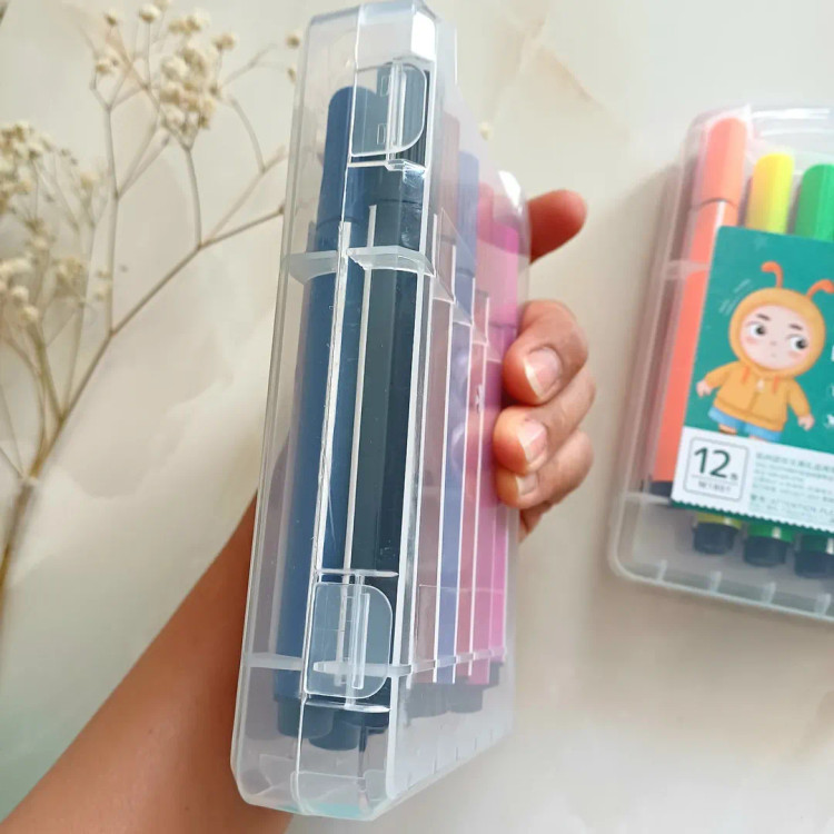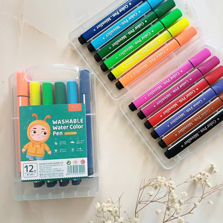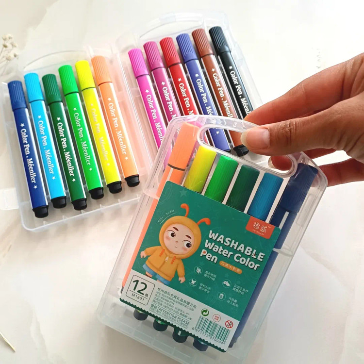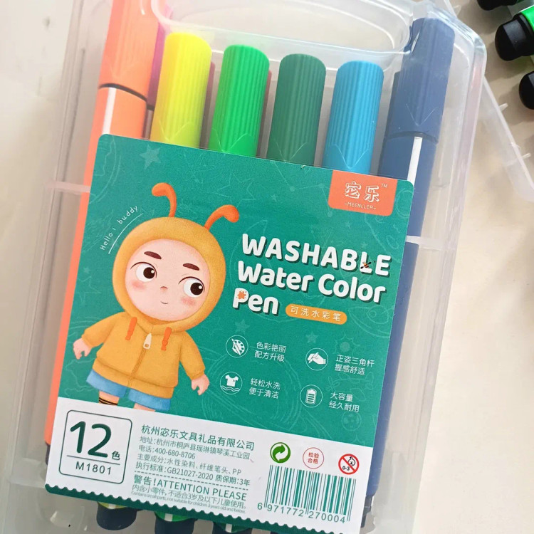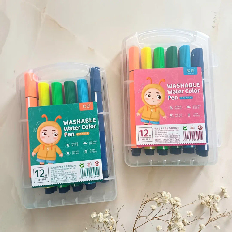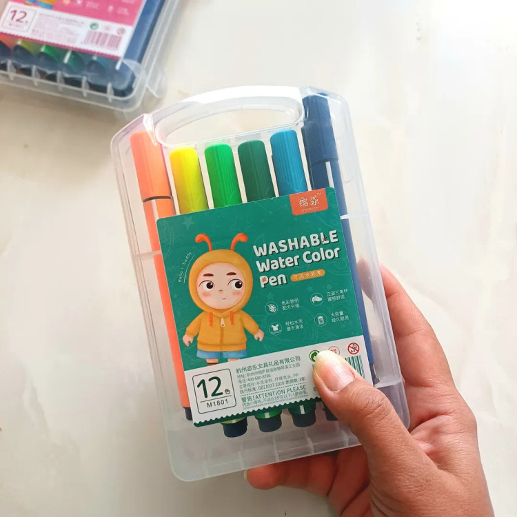 این ماژیک ها قابل شستشو با آب هستند و روی لباس و دست اگر کشیده بشه براحتی با آب شسته میشه ۱۲ تا رنگ شاد و کاربردی داره جعبه محکم طلقی داره که قفل هم داره نوک نرم با پهنای مناسب ، بدنه ۳ گوش