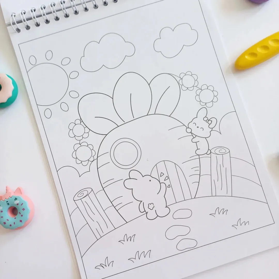دیگه از اون دفتر رنگ آمیزی های قدیمی واسه کوچولوها نخر به جرات میتونم بگم یکی از قشنگ ترین و کیوت ترین دفترهای رنگ آمیزی هست طرح هاش فوق العاده ناز و دلبر هستن که بچه ها عاشقش میشم الگوی رنگ نداره، بخاطر همین بچه ها با خلاقیت خودشون و ذوق و فکر خودشون هر رنگی بخوان میزنند جنس برگه هاش ضخیم و عالیه ، برای کار با آبرنگ، ماژیک، پاستل هیچ مشکلی براش پیش نمیاد . ۱۶ صفحه طرح و ۱۶ صفحه نقاشی ساده ۴ تا طرح جلد داره ولی داخل همشون و طرح های همشون یکسان هست ابعاد خوبش ۲۴ در ۱۷ سانتی متره