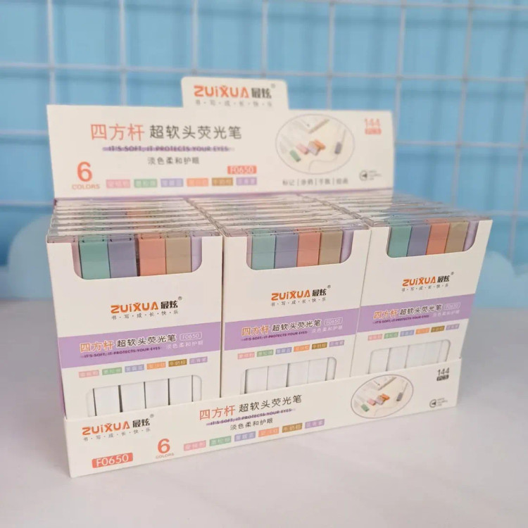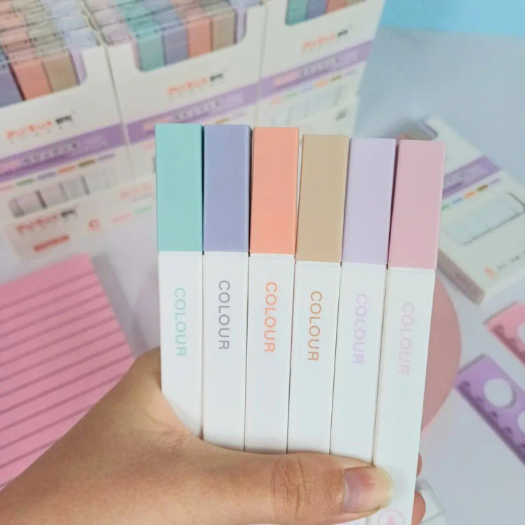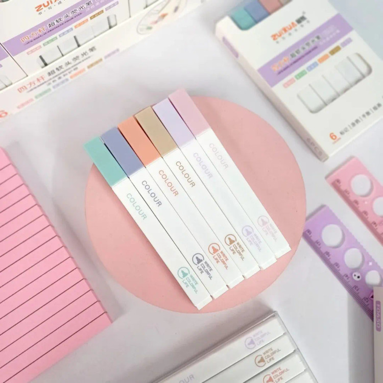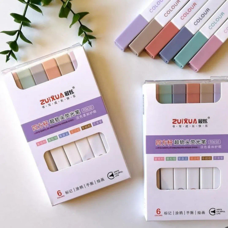 محبوب ترین و پرطرفدارترین هایلایتر هستن ایشون، که تا ابد شارژش میکنم از برند معروف zuixua هست رنگ هاش فوق العاده ناز و ملیح هست ، اصلا چشمت رو اذیت نمیکنن ، نه خیلی کمرنگ و نه خیلی پررنگه بدنه و طراحی شیک و مینیمال داره نوکش نرم و روون هست ،به پشت برگه رنگ پس نمیده خیلی خوش دسته از روی میز سر نمیخوره، چون ۴ گوشه رنگ مود داره
