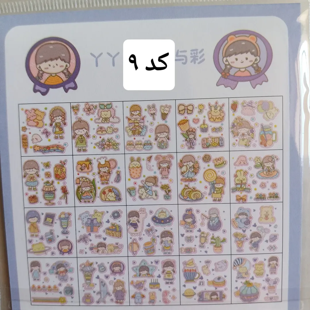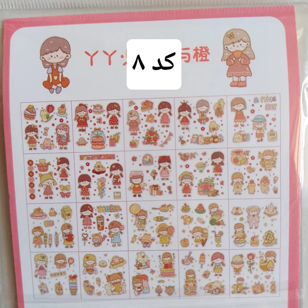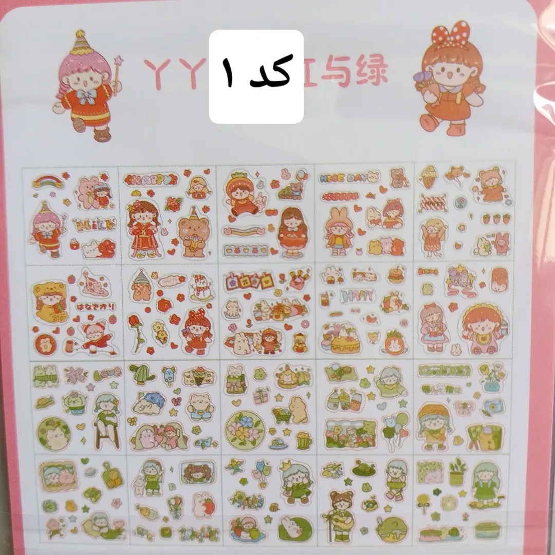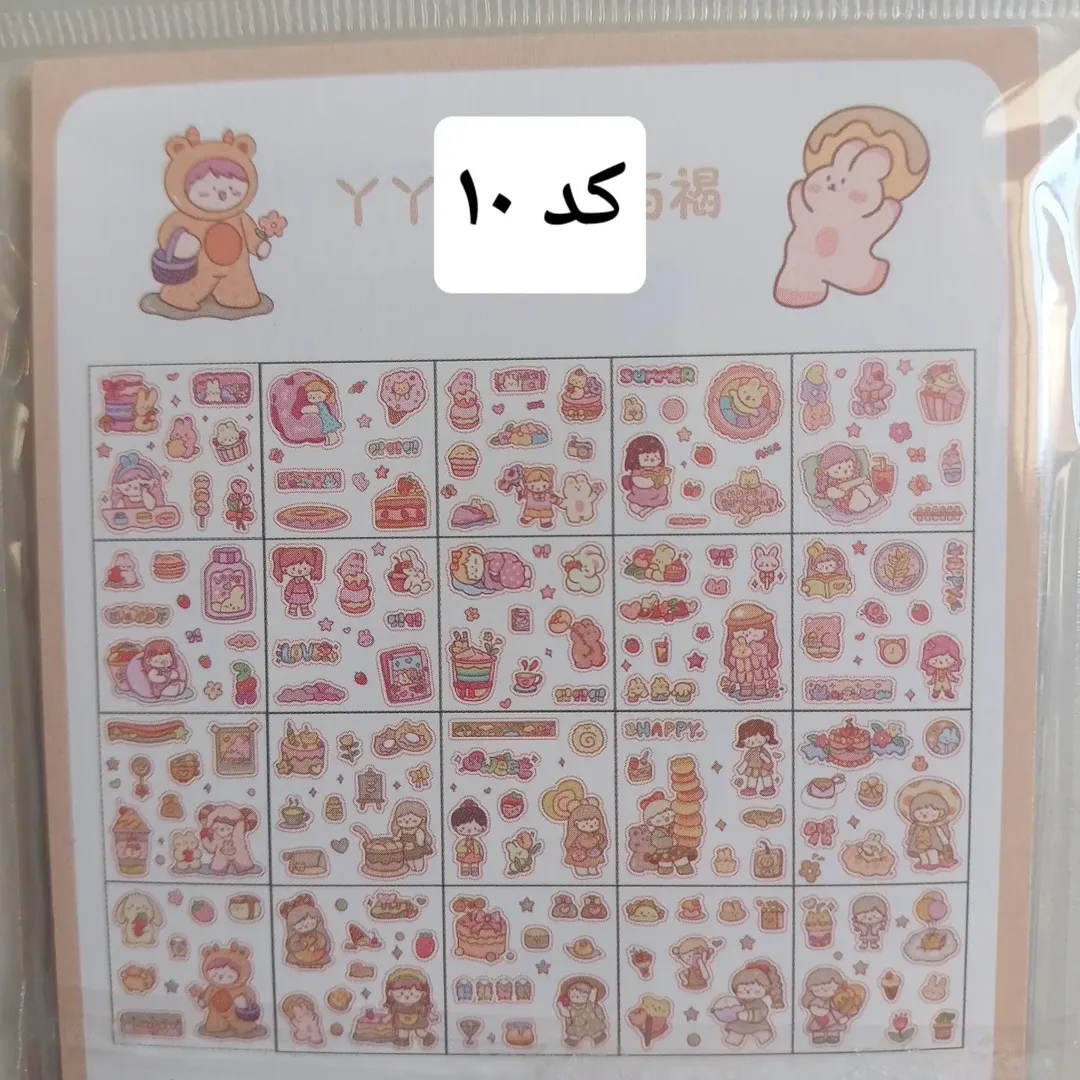 متاسفانه این کالا در حال حاضر موجود نیست. میتوانید از طریق لیست بالای صفحه، از محصولات مشابه این کالا دیدن نمایید.اگه دوست داری هرجایی رو خوشگل و جینگول کنی، پس عجله کن تا تموم نشده اینقدر رنگ و روی این استیکرها ملیح و نازه که حد نداره ، یکی از یکی ملوس تر هستند، طرح هاشون خیلی متنوعه توی هر بسته ۲۰ تا ورق استیکر شفاف هست ابعاد هر ورق ۸ در ۸ سانتی متره استیکرها برش خورده هستن و چون شفافن به هرجایی که بزنی گوگولی میشه میتونید به دفتر ، تبلت، موبایل، قمقمه، لیوان، شیشه ویترین، یخچال و هرجایی که خواستی بچسبونی ۱۰ تا طرح و رنگ داره که مطمئنم نمیتونی انتخاب کنی
